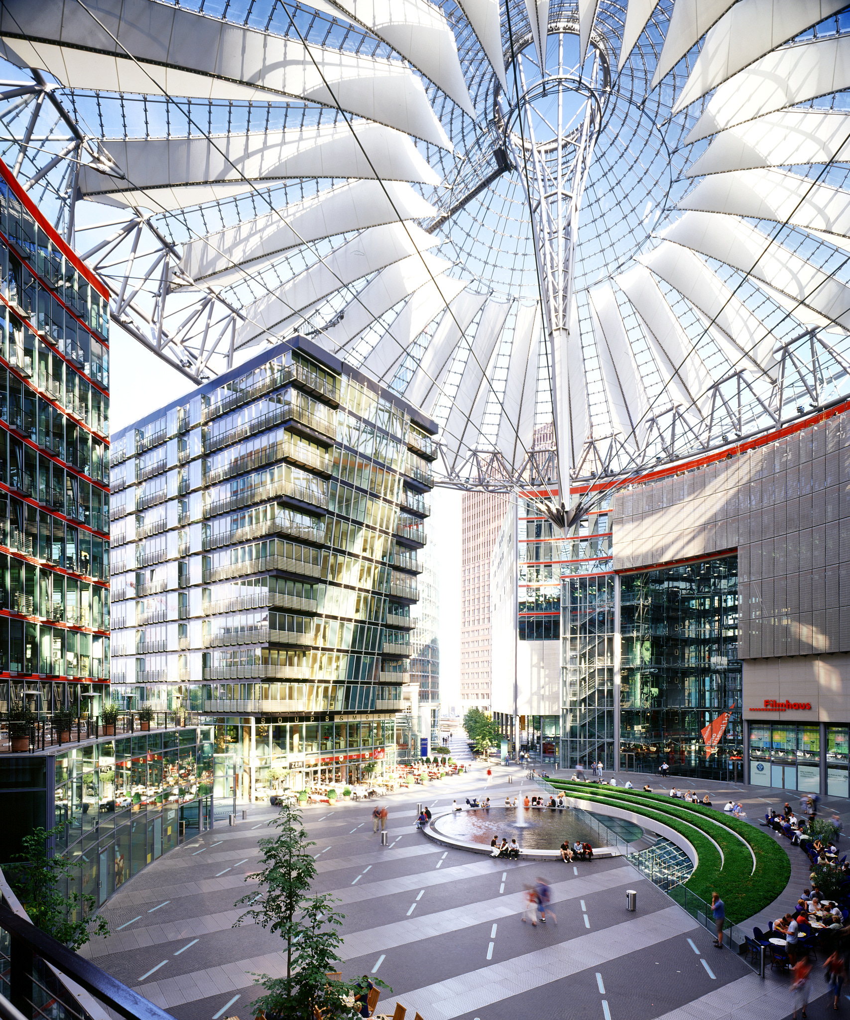 Beyond the urban, architectural, and spatial concepts is the mix of program which assures true urban life and activity in the Sony Center. The location and configuration of the site together with the functional parameters offered sufficient and guiding clues for their location.