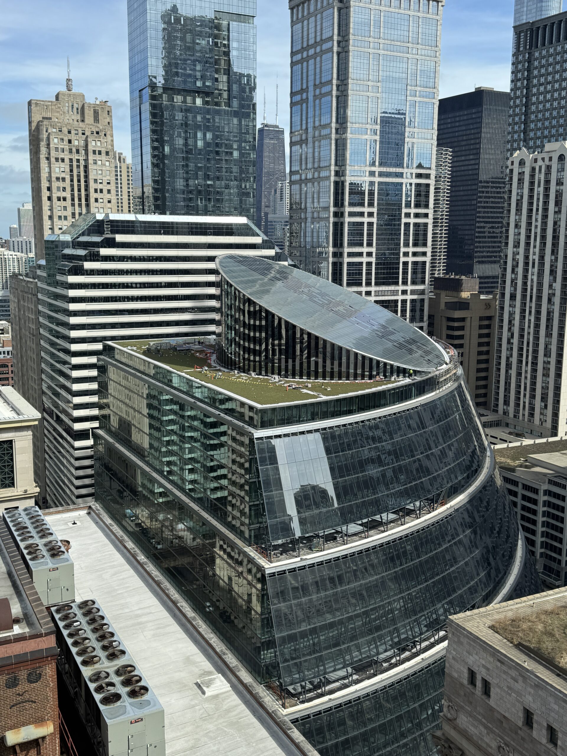 In late 2021, Jahn began reimagining this landmark as Google’s future Chicago headquarters. This repositioning will carry forward the original vision of urban connectivity, shared space, and an innovative workplace. Key architectural elements—such as the sweeping curved southeast façade and the iconic rotunda—will be preserved, maintaining the building’s distinct identity. Meanwhile, the existing façade will be replaced with a high-performance, triple-glazed curtain wall, enhancing transparency, daylighting, and energy efficiency while reducing reflectivity. Additionally, the five-story atriums along the southeast perimeter will be converted into sheltered, landscaped terraces, enriching the workplace experience.